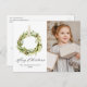 Skicka dina kära semesterhälsningar med vårt vackra fotovykort för helgdag. vykortet för elegant helgdag har en vattenfärgsutandning av helgdag från gräs, gräs och grönt lämnar hängt med ljusbeige band. Uttrycket "God jul" visas nedan i ett svart, modernt kalligrafiskt skript. Anpassa framsidan av julvykortet genom att lägga till ditt namn, året och ett foto. vykortet återgår till visning av returadressen, ett ytterligare foto och anpassningsbar.