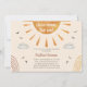 Vi firar din lilla föds ankomst med vår fantastiska Boho Watercolor "hit the Son" Baby Shower-inbjudan. Den här designen har en charmerande vattenfärgsillustration av sol i varma, gyllene nyanser som ställs in mot en soothing ochre bakgrund. Området kring sol är ömtåliga vattenfärgskmoln och grova sväljer under flyget, vilket ger en viskare beröring. En boho-stil-regnbåge slutför dekorationen och skapar en mjuk perfekt av serenatmosfären för firande. Denna inbjudan är idealisk för blivande föräldrar som med naturen inspirerad, minimalistisk estetik med bohemisk flust från kärlek. Neutraltens toner gör den lämplig för alla babyduschteman. Anpassa den med din händelseinformation för att skapa en varm och inbjudande keepaus för dina gäster.