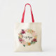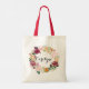 Whimsisk och boho-inspirerad handväska med vattenfärgskriven blomsterkrans av burgunder, rosafärgad, orange blommor med kopparfärgad trollslända. Personalisera genom att lägga till dina egna detaljer. Denna höstblomsterkrans handväska är perfekt som en personlig gåva.
