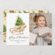 Ett enkelt, men ändå elegant fotokort med helgdag som har en boho-vattenfärg fylld med Julgran och presenter. "God jul" visas nedan i ett vackert kalligrafiskt skript. Anpassa kortets framsida genom att lägga till ditt namn, året och ett foto. Helgdag snyggt återgår till att ha ett matchande mönster med en beige-bakgrund.