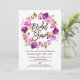 Boho Watercolor Lila Blommigt Utandning Möhippa Inbjudningar
