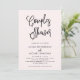 Den här moderna och trendig duschinbjudan i par har en vattenfärgsdesign i rosa på baksidan, med ett matchande utseende i rosa färg på framsidan för en boho för snyggt och elegant.