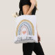 Boho monogrammad rosa blå senap färg Rainbow med hjärta varje dag i säcken med ett finstilt typsnitt. Lägg till baby namn. Carry baby sak i en söt liten tote.Cheerful vår eller sommarvibe.