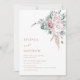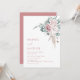 Denna eleganta samtida bröllopsinbjudan har vattenfärg målade rosor i boho-stil och grönska på en vit bakgrund.
