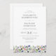 Den här boho bröllopsinbjudan innehåller en grund-gräns av vildblommor med vattenfärg. Anpassa den med namnen av bruden och groomen i vintage grått typsnitt. Lägg till parets initialer på baksidan, omgiven av en liten motsvarande vattenfärgsfrökand.