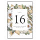 Elegant, bröllop-bordsnummer av tropiska blommigtar med vita vattenfärgblommor och lush bladverk i grönt av rik och bruna jordtoner. Anpassa genom att lägga till bordsnumret, namn, bröllop-datum osv. Utformningen upprepas på baksidan. Samordnar med vår Boho White Blommigt & Greenery bröllopssviten.