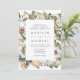 Elegant, en unik inbjudan till bröllop med vit blommigt med dina bröllop-detaljer som är ramade av vita vattenfärgblommor och lush bladage i rikens grönt, beige och bruna jordtoner. Inbjudan återgår till en ljusbeige vattenfärgsbakgrund.