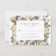 Elegant, unika kort för blommigt med ditt OSA datum och anpassningsbar godkänner/avböjer formuleringar som är utformade med vita vattenfärgblommor och lush bladverk i grönt av rik, beige och brunjordstoner. Svarskortet för blommigt bröllop återgår till en ljusbeige vattenfärgsbakgrund. Designad att samordna med vår samling Boho White Blommigt & Greenery bröllop.