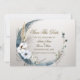 Boho White Orchid Flowers Blue Måne Elegant Party Spara datumet. Unik, vacker utformning av snyggten. Lätt att vara personlig. Teckensnittet stil, storlekt och färg kan ändras. Matchande objekt är tillgängliga.