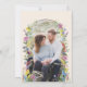 Det här moderna beige boho blommigt bröllop spara datum-kortet har en båge som är dekorerad med vitfärgade vilda blommor med vattenfärg, snyggt delikat skript kalligrafi och ett foto på baksidan i en båge ram. Kolla in samlingen för matchande bröllopsinbjudan och fler matchande produkter.