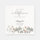 Tema för babyduschinbjudan till blommigt för späd med vattenfärgad illustration av rosa och vita vilda blommor. I texten står det: "Vår lilla vilda blomma är på väg." Perfekt till vår barnduschen.