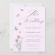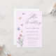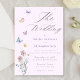 Fira din vildblomsfjäril bröllop med detta inbjudningskort som blandar boho charm med modern elegans. Den här utformningen har vattenfärgade blommigtar i lila- och lilaxskuggor och är ett uttryck för ren botanisk skönhet. Med det enkla men ändå slående skriptet anger det tonen för en dag av kärlek och glädje.