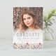 En vacker vattenfärgsfärgad blommigt gräns av vilda blommor dekorerar grund kant på det här trendiget boho studenten-meddelandekortet. På kortets framsida anpassar du den dammiga blå textövertäckningen på ett foto av lodrät, med student namn i handskriftsskript och skolåret och klassåret i sans serif-teckensnitt. Baksidan återger vildblomman gräns på en dammig blå bakgrund och har en andra bild av vågrät, med utrymme för information om vad du åstadkommit med student och framtida planer. Ett val av bra för högskoleexamen eller högskoleexamen.