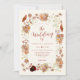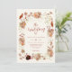 Elegant boho wildblomma: Blyinbjudan med ett skript för bränd orange snyggt och med vackra, handmålade, torkade vilda blommor arrangerade i en bågdesign. Enkel att använda mallar för att lägga till all nödvändig bröllopsdag. Fantastisk perfekt av vattenfärgade blommor för fallbröllop i bränd orange, terracotta, brun, orange, gultens lila, rosa och grönt färg palett och fungerar verkligen väl för ett kulturområde i bröllop. Originalkonstverk av konstnären Catherine Sweetman