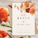 Vi presenterar det vackra boho Watercolor Rustic Fall Wedding-OSA-kortet, perfekten kompletterar din bröllopsinbjudan. Med en unik, handmålad, vattenfärgad, vilda blommor av konstnären Catherine Sweetman, fångar detta kort höstens skönhet med sin elegant torkade blomdesign. Skriptet för bränd orange i elegant tillför en modern snyggt, medan den jordnära paletten med bränd orange, terracotta, rosa, lila, brun och beige framkallar säsongens värme. Med mallen för enkel använda kan du inkludera all viktig OSA. Idealiskt för bröllop under sommaren och hösten är denna OSA kort designad för att passa perfekt med ett biotema, bröllop.