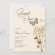 Boho Wildblomkväll före middagsinbjudan med skript text och vacker fjäril, vit vild blommor i burgundi, violett och gräddnyans. Minimal och elegant repetitionsmiddag inbjudan för fall eller höstnatt före firande i bröllop.