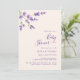 Den här snyggt- och eleganten-babyduschinbjudan visar ömtåliga blomsterlavendelblommor i en serenboho-design, skapar den perfekt för vår, sommar eller fall firande. Bakgrunden för mjuk rosa förstärker de mjuka lavendelfärgade blommigtarna, medan kalligrafiskriptet på ett vackert sätt kompletterar designen. Matchande objekt är tillgängliga.