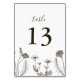 Boho Wildblomline Line Art White Struktur Bröllop Bordsnummer