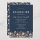 Boho Wildblomma Mönster Navy Blue Studentfest Inbjudningar