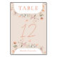 Boho Wildblommor Bröllop Bordsnummer. Söta mjuka, romantiska blommigtar för peachy rosa med neutralt beige bakgrund.