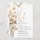 En elegant boho könsneutral blommigt bouquet av vilda blommor inbjudningskort för möhippan, i mjuka pastellnyanser av kräm, rost och grönt, och en känslig handskriven skripttyp. Perfekt för en vår, sommar eller fall-möhippa.