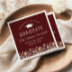 En vacker vattenfärgsfärgad blommigt gräns av vilda blommor dekorerar grund kant i dessa trendig boho studentfest napkins. Ord "grattisar till student" omger en silhuett av ett traditionellt bruk av murbruk. Anpassa den vita texten på en burgundröd bakgrund, med student namn i handskriftsskript och skolåret och klassåret i sans serif-teckensnitt.