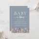 Boho Wildblommor Dusty Blue Baby Shower Inbjudningar