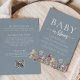 Boho Wildblommor Dusty Blue QR Code Baby Shower Inbjudningar