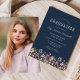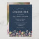 Boho Wildblommor Navy Blue Photo Studenten Inbjudningar
