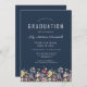 Boho Wildblommor Navy Blue Studentfest Inbjudningar