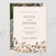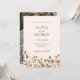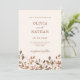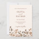 Den här enkla och boho-bröllopsinbjudan innehåller en muterad, neutralt beige bakgrund och brun och teracotta höstfärgad vilda blommor, med ditt foto på baksidan inramat av en matchande övertäckning av vildblommor.