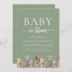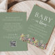Boho Wildblommor Sage Grönt QR Code Baby Shower Inbjudningar