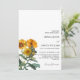 Med den här fina designen kan du göra ett modernt inbjudningskort för solrosbröllop med Blommigt med en fantastisk rustik blommigt arrangemang, geometrisk guld-effekt gräns och modern oformaterad text.