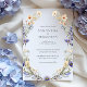 Rustik blek blått och lilak med sage grönt löv och gult och orange ger paletten en romantisk och naturlig känsla. Mutta toner behållor den enkla och minimala perfekten för utomhusboho, skogsbruk och vår eller sommarträdgårdsevenemang. En vit andedräkt av blommor omger ditt namn och händelseinformation, som visas i ett typsnitt för eleganten. Det är en inbjudan till ett firande där skönheten hos vilda blommor passar in i en simplikitetsangivelse och skapar en vibe som är unik för dig. Få redo att göra en påstående och ange tonen för ett bröllop som är lika oförglömligt som din kärlek-artikel