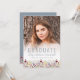En vacker akvarellblomma kant av vilda blommor pryder den nedre kanten på detta trendiga boho-examensbevis. På framsidan av kortet kan du anpassa den dammiga blå texten överlägset på ett vertikalt foto av examenstagaren, med examenstagarnas namn i handskriven skrift och skolan och klassen år i sans serif-teckensnitt. Baksidan upprepar den vilda blomkanten på en dammig blå bakgrund och har ett andra, horisontellt foto, med utrymme för detaljer om din examenstagares prestationer och framtida planer. Ett bra val för high school eller college-examen.