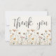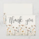 Wildflower Thank You Card. This minimalist and elegant design is perfect for bridal showers, baby showers, or anyone who loves a simple, timeless style. The front features an ivory background with “thank you” displayed in a graceful script font, with a minimal arrangement of simple wildflowers along the bottom in muted, elegant tones of blush pink, ivory, soft yellow, and subtle neutral accents with delicate green leaves for a refined, airy touch.