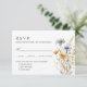 Utkastad för att samordna med vår BOHO VÅR SOMMAR VILDblommor bröllopssamling, har detta eleganta botaniska svarskort en rustik chic-vattenfärg bukett av ängsblommor och löv på höger sida av kortet med din önskade svarsdatum och måltidsval eller menyval.
