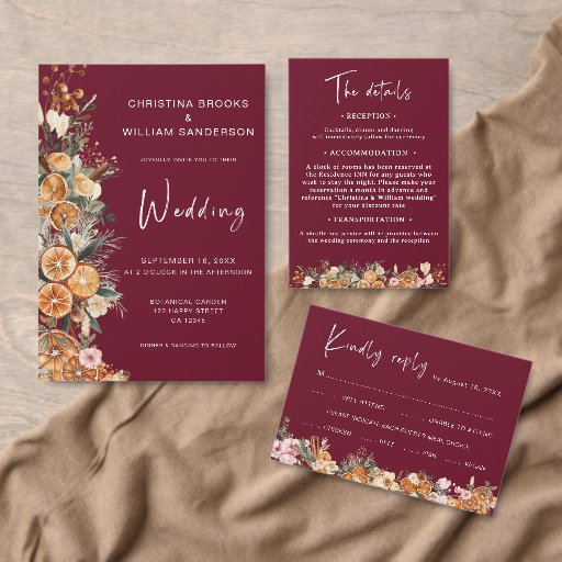 Det här boho helgdag burgundy-fotobröllopskortet kombinerar på ett vackert sätt förtjusningen av blommigtar på vintern med den tidlösa elegansen av burgundi. De är en hjärtlig inbjudan till era kära att få se magin i er kärlek-historia utvecklas.