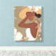 Boho Woman with Neutral Aesthetic Floral Line Art Canvastryck