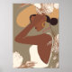 Boho Woman with Neutral Aesthetic Floral Line Art Poster