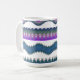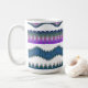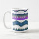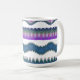 Enjoy every sip in style with this boho zigzag pattern coffee mug featuring bold blue, purple, teal, and white tribal wave artwork. The modern design adds a beautiful artistic touch to your morning coffee, tea, hot chocolate, or office desk setup. Perfect for the home, workplace, college dorm, or gifting.