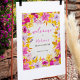 Välkomna gästerna med den här boho-moderna handmålade blommigtens pulserande charm. De livliga nyheterna lila, grönt, lavender och gult var tonen för ett glädjande firande. Blommigtar med flytande vattenfärg ger en naturlig känsla och väcker känslor, medan glatt faux guld glitter tillför tillfälle en aning glamor. Det moderna typsnittet för skript i eleganten bibehåller en sofistikerad estetik, som skapar snyggtens ingång till din bohemininspirerade händelse. Detta välkomsttecken från originalet var varmt inbjudan till alla på festligheterna, och det var början till en minnesvärd sammankomst.