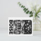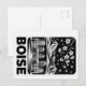 Capture the calm charm of Boise, Idaho with this striking black and white woodcut-style skyline Postcard. Set against the snow-capped Boise Foothills, the design features the iconic Idaho State Capitol alongside modern buildings, rendered with crisp contrast and clean lines. A delicate cherry blossom branch dusted with snow adds a unique seasonal touch, while soft gradation creates a peaceful winter atmosphere. , this Boise skyline Postcard makes a thoughtful gift for locals, visitors, and fans of minimalist city and mountain-inspired art.