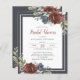 Denna budget Elegantl Inbjudningskort för möhippan har en bukett av blomstrande mörk röd ros och marinens blåa blommor, som spolar grönt i elegant mörk blått och vita ram. Denna moderna inbjudan är perfekt för en möhippa på eleganten. Den här lysande atmosfäriska inbjudan till din speciella dag. Observera att kuverten INTE ingår i den här utformningen. Om du behöver kuvert kontrollerar du vår samling eller köper dem separat från marknaden.