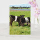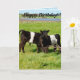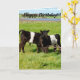 I Lycklig i en stor lush Fält går två unga kalvar med bälte i kalvar i sunt eftermiddag, med en Logotyp i Grattis på födelsedagen.