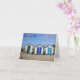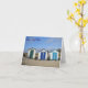 Detta ljusa och färgstarka foto på detta anteckningskort togs på en solig dag men kylig dag i Southwold i södra Öster i England. Jag gillar det här fotot för det är en sommarscen från en vanlig engelsk kuststad. De här unika strandkottarna ser fantastisk mot sommarblått himlar. Stenhönsen är ett mycket eftersökt och berömt kustområde för många brittiska besökare i havet. Ägarna till dessa kojor målar vanligtvis dem i färg i havet, t.ex. "Havsblått" och "Sand gult", så att de står stolta längs strandpromenaden. Bildens titel är: "Seaside Beach huts" och jag tänka att det är ett lysande och roligt fotoanteckningskort. Det är en originell sändning till alla som kärlek av havet och sommarlugnet. Det här är ett anteckningskort för anpassadet där du kan lägga till en egen text.