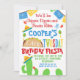 Tittar du en färgfull taco på två dagar? Den här snygga designen har några kaktus, flaggor, sombrero och maracas på vit bakgrund. Det här är ett sött sätt för inbjudan gäster till dina småpojkar att fiesta temed andra födelsedagsfesten.