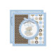 Täck nallen med noveltyns prick och tryck med band- och bockduschkort.