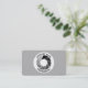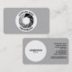 En visitkortsmall med en färgstark öppningssymbol i en vit cirkel med böjt textföretag namn och affärstyp. Företag namn och företagstyp på framsidan, med namn och andra kontaktuppgifter på baksidan med hjälp av den vita cirkeln utan bländarsymbolen för namn och jobbtiteln, placerad på den lämnat sidan.