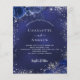 Observera att inbjudan är papper och mycket tunn. Kuvert ingår inte. Om du vill ha mer omfattande inbjudningar (samma design) kan du besöka vår butik. En marin blå bakgrund, dekorerad med faux silver glitter, gnistor och blå blommigtar. Den blå färg är ojämn. Anpassa och lägg till namn och information. Tillbaka: Lägg till webbplatsens URL för bröllop för information om bröllop och OSA.